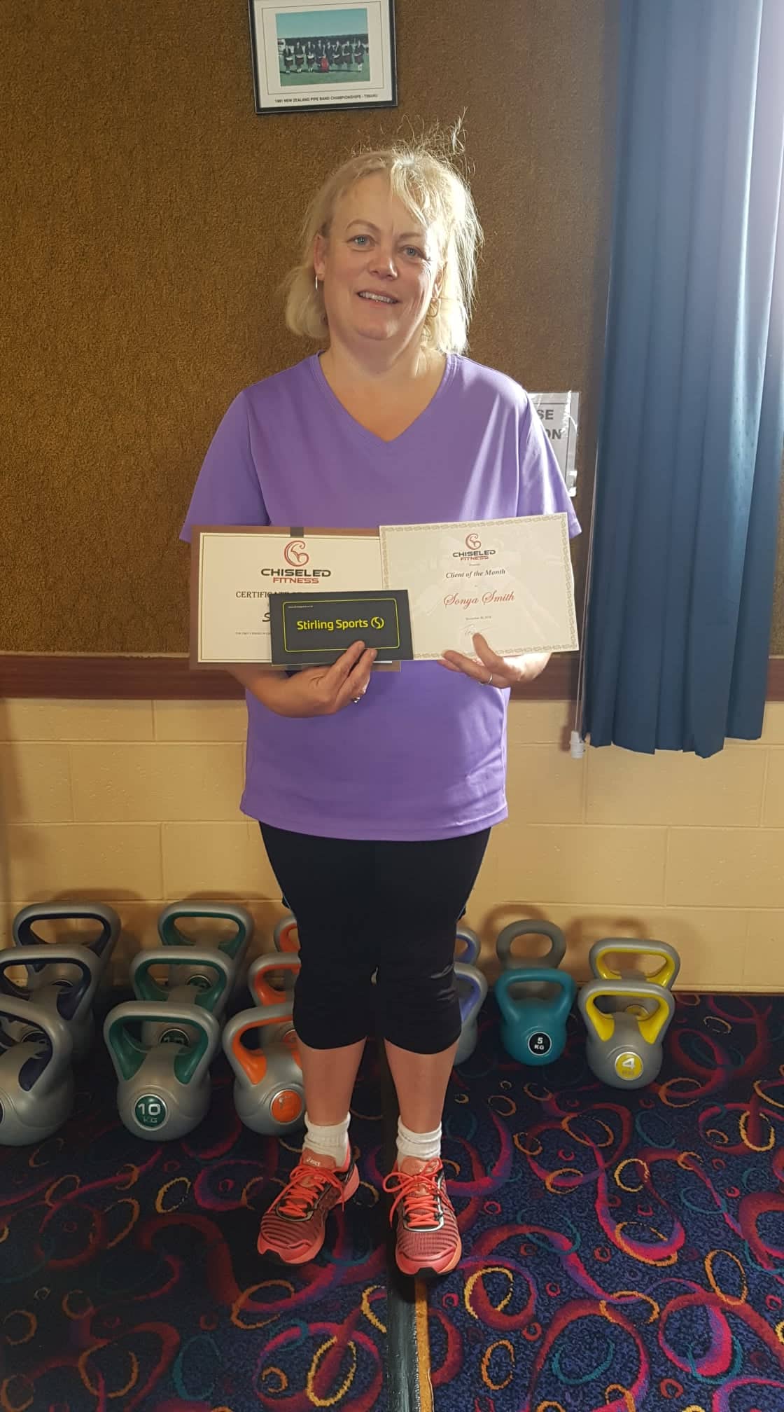 Every Client of the Month recipient receives a $75 Stirling Sports voucher and a special award to show his/her dedication and effort. Well done to Sonya!